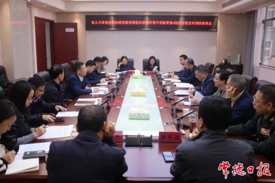 调研组一行先后走访了常德沅郡实验学校、常德芷兰实验学校,实地了解有关情况,随后召开座谈会,听取市教育局关于依法行政及优化营商环境工作情况的汇报,并与市教育局相关负责人和科室负责人进行交流。调研组对市教育局在推进依法行政和优化营商环境方面取得的成效予以肯定。
