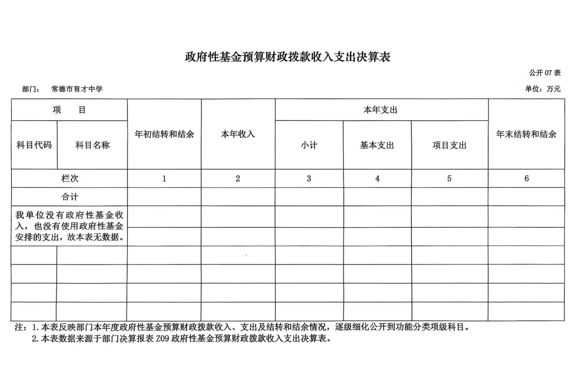 七、政府性基金预算财政拨款收入支出决算表