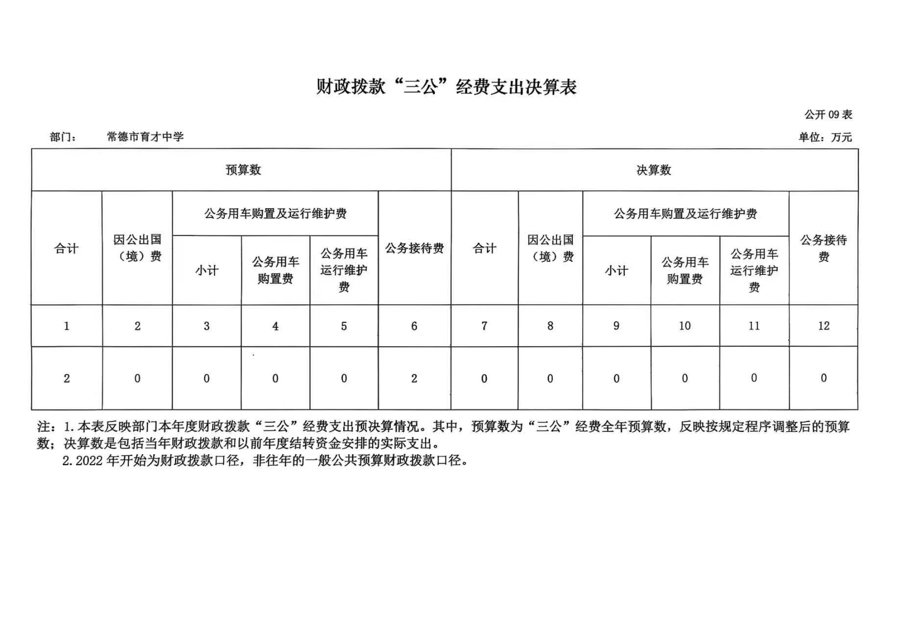 “三公”经费财政拨款支出预算为2万元,支出决算为0万元,完成预算的0%,决算数小于预算数的主要原因是本年度未发生“三公”经费支出,与上年相比无增减变化。其中: