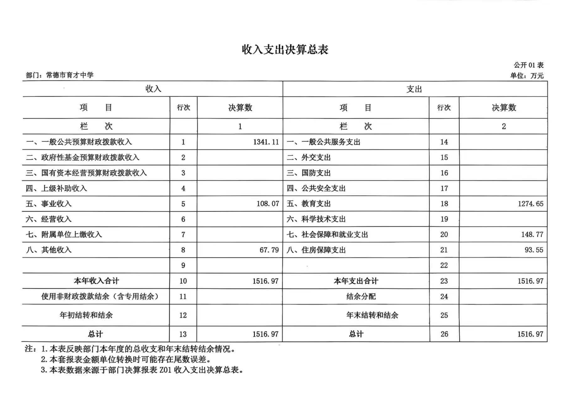一、收入支出决算总表