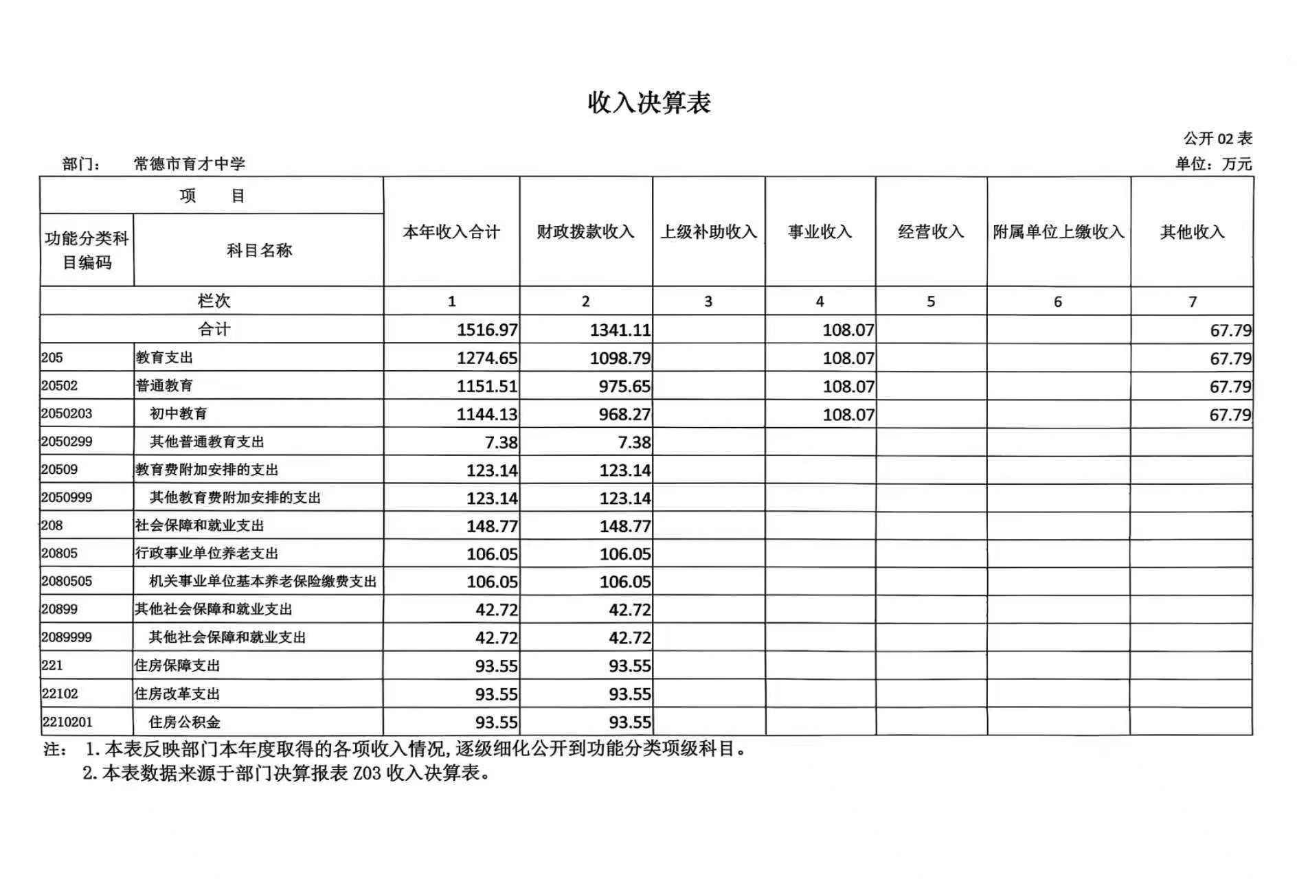 二、收入决算表