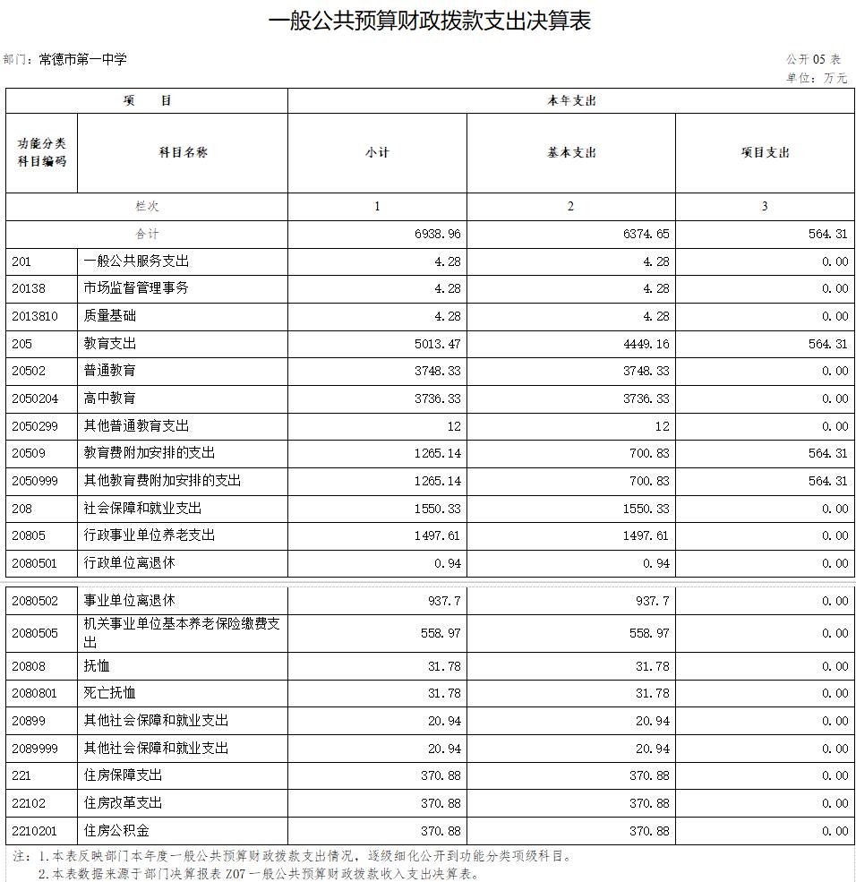 常德市第一中学(以下简称市一中)是常德市教育局举办的湖南省示范性高级中学,全额拨款事业单位,统一社会信用代码12430700446432908T,单位负责人:唐会荣。单位内设办公室、教务科、教研室、学生科、总务科、外联科6个科室。截至2023年底,核定学校教职工编制210人,学校在职人数实为211人,退休人员155人,在校学生2454人。