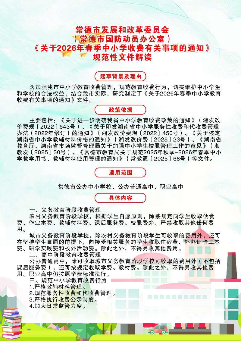 图文解读:《常德市发展和改革委员会(常德市国防动员办公室)等四部门关于2026年春季中小学收费有关事项的通知》的政策解读